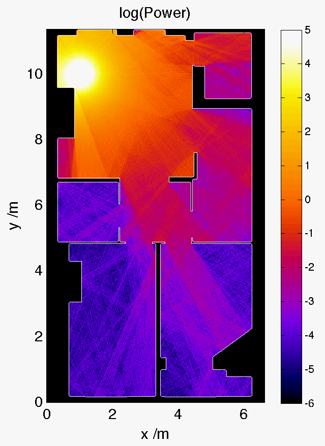 As they propagate a ‘flux map’ is built up which records the contribution of each ray to the WiFi flux which would be recorded at each point if a detector were present. Importantly, if the ray has propagated a distance , its flux is reduced by