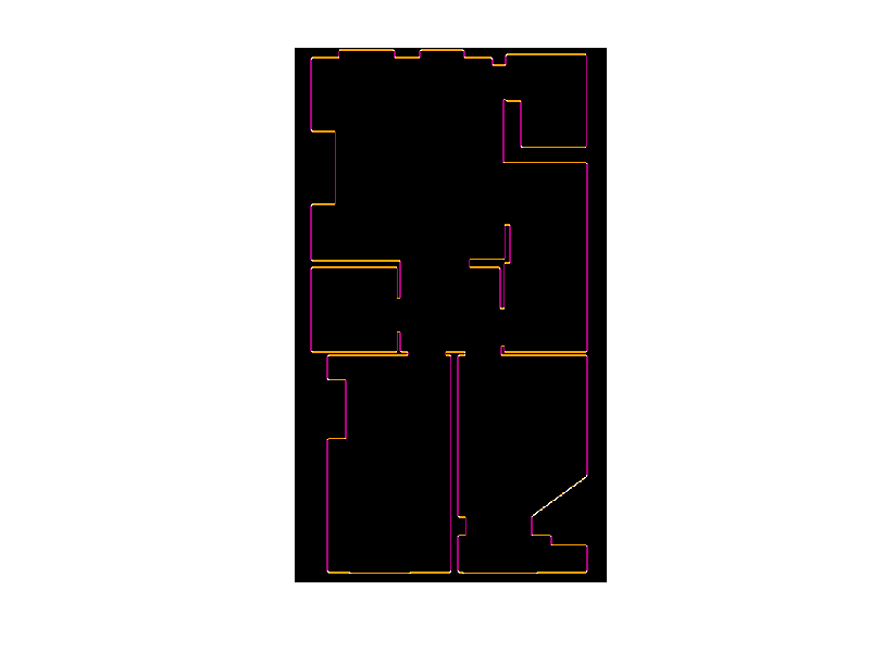 I don’t know how to go from a Sketchup model to Matlab, and trying a random Matlab .stl reader somehow tried to use 50GB of RAM, so in the best traditions of the field I bodged my way through. Namely, I took a screenshot (!!) of the drawing and created a monochrome mask in ImageJ, where white == walls