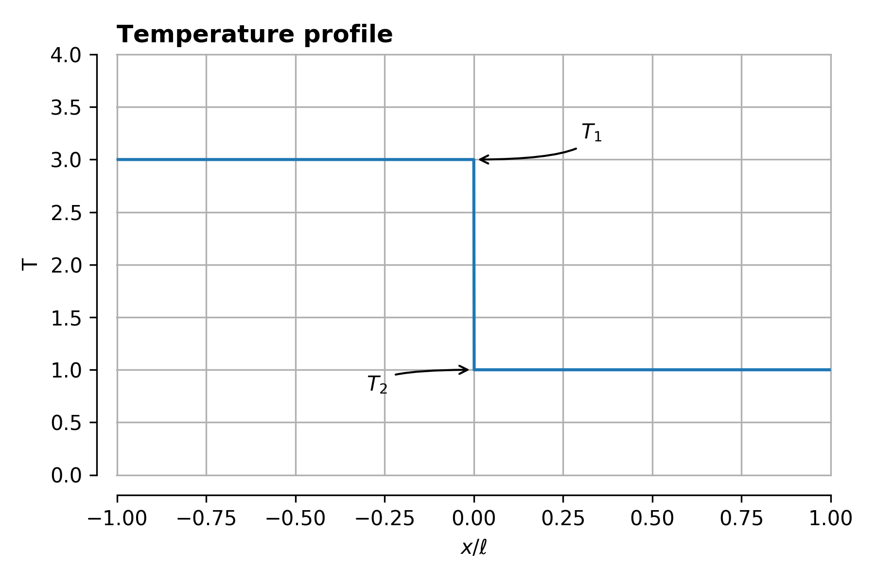 The above discussion about heat transport between bodies is a bit vague. To firm things up, we’ll consider here two bodies in one dimension of length and temperatures