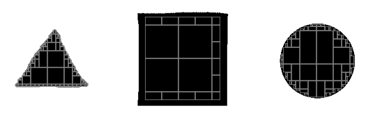 OK, let’s see if we can get close to the Blender example at the beginning. Below I’ve attempted to draw a triangle, square, and circle. The generated rectangles look like this: