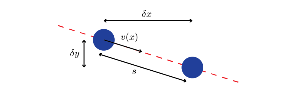 To calculate the total time taken to travel along the curve, consider the time taken to move along an infinitesimal slice starting at position :