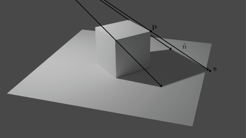 for some value of . To calculate the latter, we know that the shadow occurs at vertical coordinate
