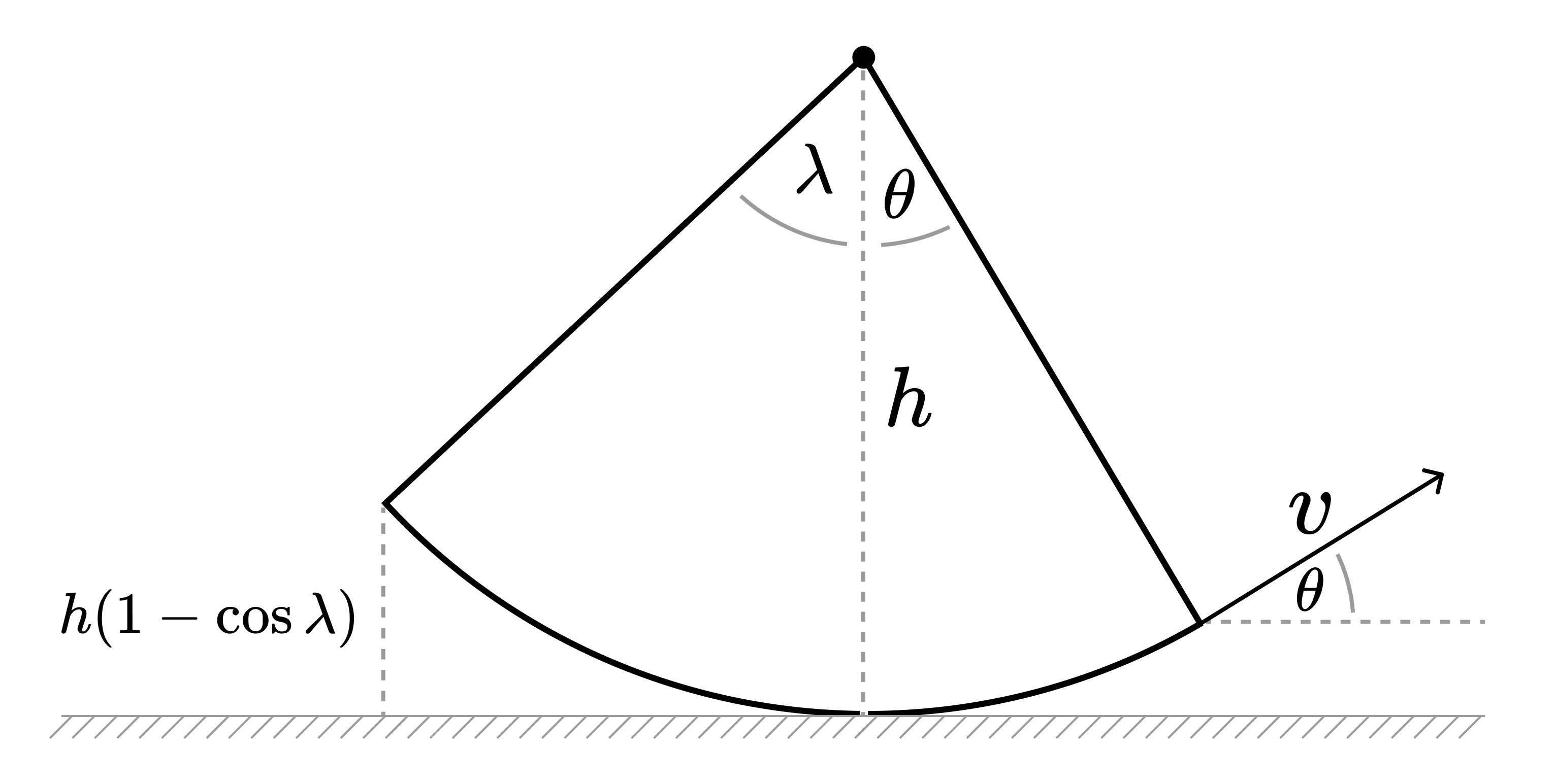 Let’s first, as usual, define the problem. Consider the following setup, where a swingee (one which shall soon be swung from a swing (say that three times fast (what are the grammatical rules for nesting parentheses?))) begins their swing at an angle , and leaves the swing at an angle