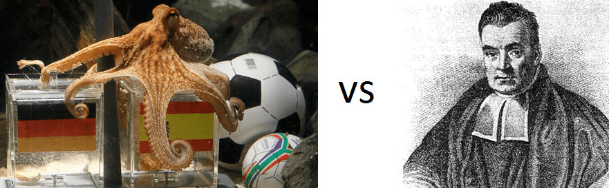 Paul the octopus, for the unaware, was a true hero of the modern age. Combining cephalopodian good looks with a pragmatically sensible German name, he was the star of the show at the Oberhausen Sea Life Centre. That is, however, until his tragic passing in 2010, when the world lost one of its most famous psychic entities. Over the previous two year period, Paul correctly guessed the outcomes of 12 out of 14 international football matches. Does this merit his psychic status? Let’s investigate, following this great example from the excellent book ‘Statistical Inference for Everyone‘ by Brian Blais.