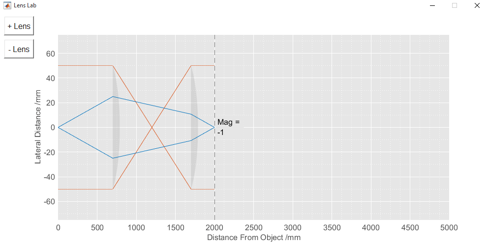 Varying the incident ray angle, we see how the light comes in and out of focus (we don’t show the incident rays for clarity):